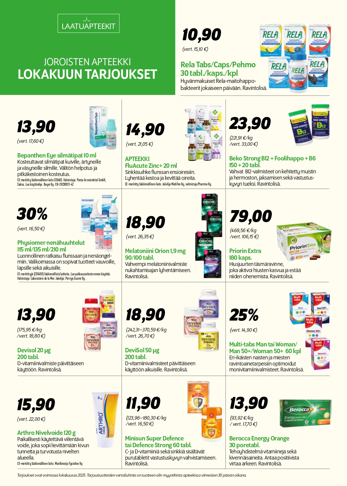 Kaikki lääkkeet ovat kaikissa Suomen apteekeissa samanhintaisia. Hinnat päivitetään Suomen apteekkariliiton lääketaksasta kahden viikon välein